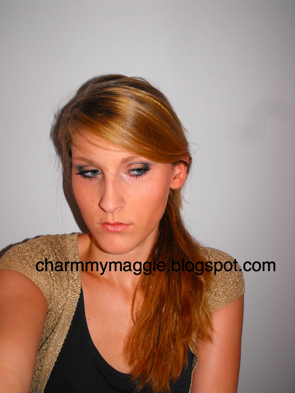 5. A paletta legvilágosabb színéből tegyünk a szemzugba, matt bőrszínnel az éleket dolgozzuk el és sötétkék szemceruzával alul fölül húzzuk ki a szemünket. Szempillaspirál és készen is vagyunk:)(aki szokott göndörítőt használni, az itt is nyugodtan göndörítsen, én nem szeretem..) Illetve akinek hasonlóan világos a szemöldöke, az fusson át rajta egy barnával:)