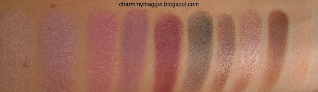 Nagyon szeretem a lila és a barna színeket, szóval mondhatni ideális számomra ez a paletta, mivel ezekből találhatunk benne árnyalatokat. A felső sor barna színeket tartalmaz, az alsó pedig a lilákat. Van közöttük matt, selyemfényű és csillogó szín is. Szuperül kombinálhatóak, készíthetünk velük szolíd nappali vagy akár durva bulis sminket is:)