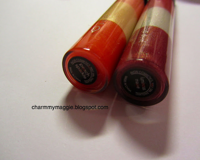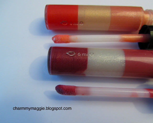 A mintákon látszik, hogy milyen szépen csillognak:) Nagyon kellemes színeik vannak, szerintem mindkettő nagyon hordható szín bárkinek, és szépen pigmentáltak is ahhoz képest, hogy szájfényről van szó.