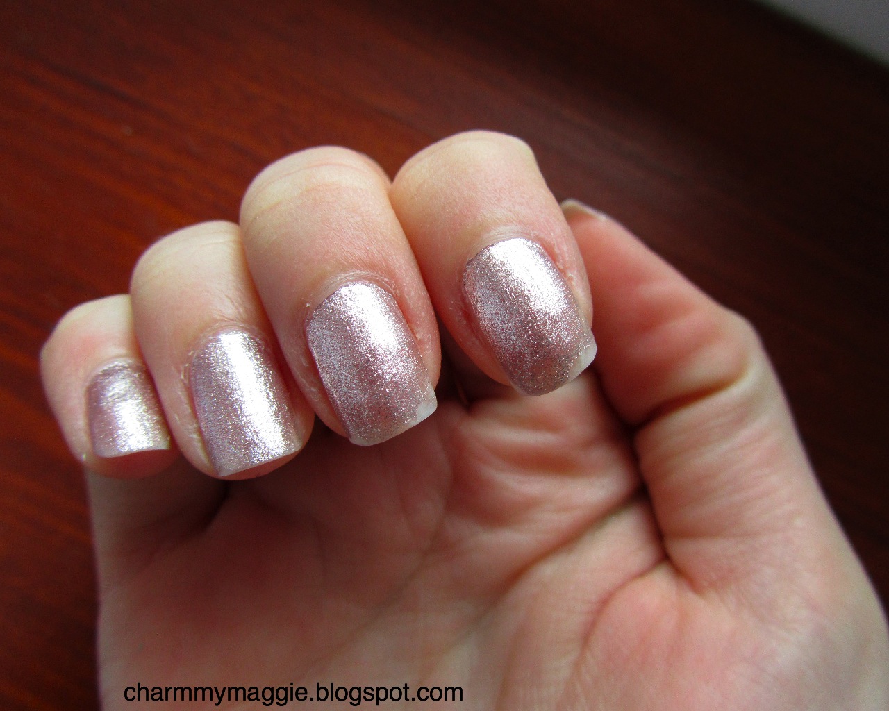 Szép halvány rózsaszínes alaptónusa van és mellé tömény ezüst csillám:)