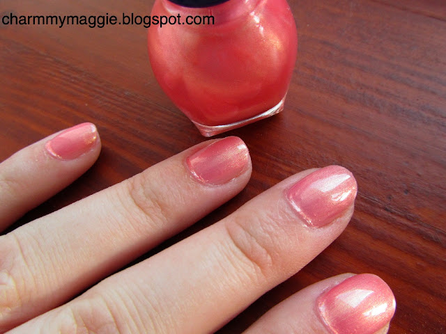 Két rétegben már előjön az igazi szép aranyfényű-korall színe, amit be kell vallanom…imádok! Annyira nyári szín, hogy szinte teljesen mindegy, hogy mennyire tartós, tuti biztos, hogy sűrűn lesz idén nyáron kilakkozva ezzel a körmöm, mert annyira imádom ezt a színt:)