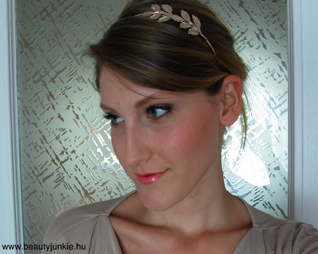 Az ajkaimon a kedvenc szájfényemet használtam, egy aranyló csillogású rózsaszínt, mindenképp szerettem volna valami aranyat csempészni az egészbe:)