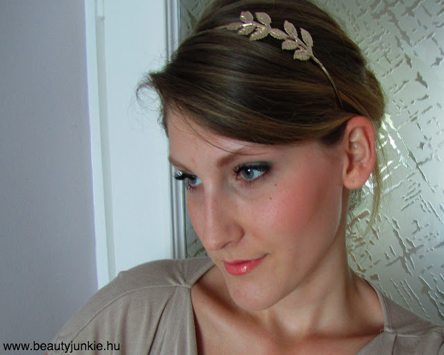 A hajamat egyszerű kontyba fogtam és egy arany hajpántot tettem fel.