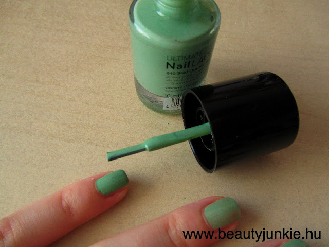 Ahogy végigértem az alappal, már teszem is fel az első réteg színt, most épp ezt a Catrice – Sold out forever zöldet: