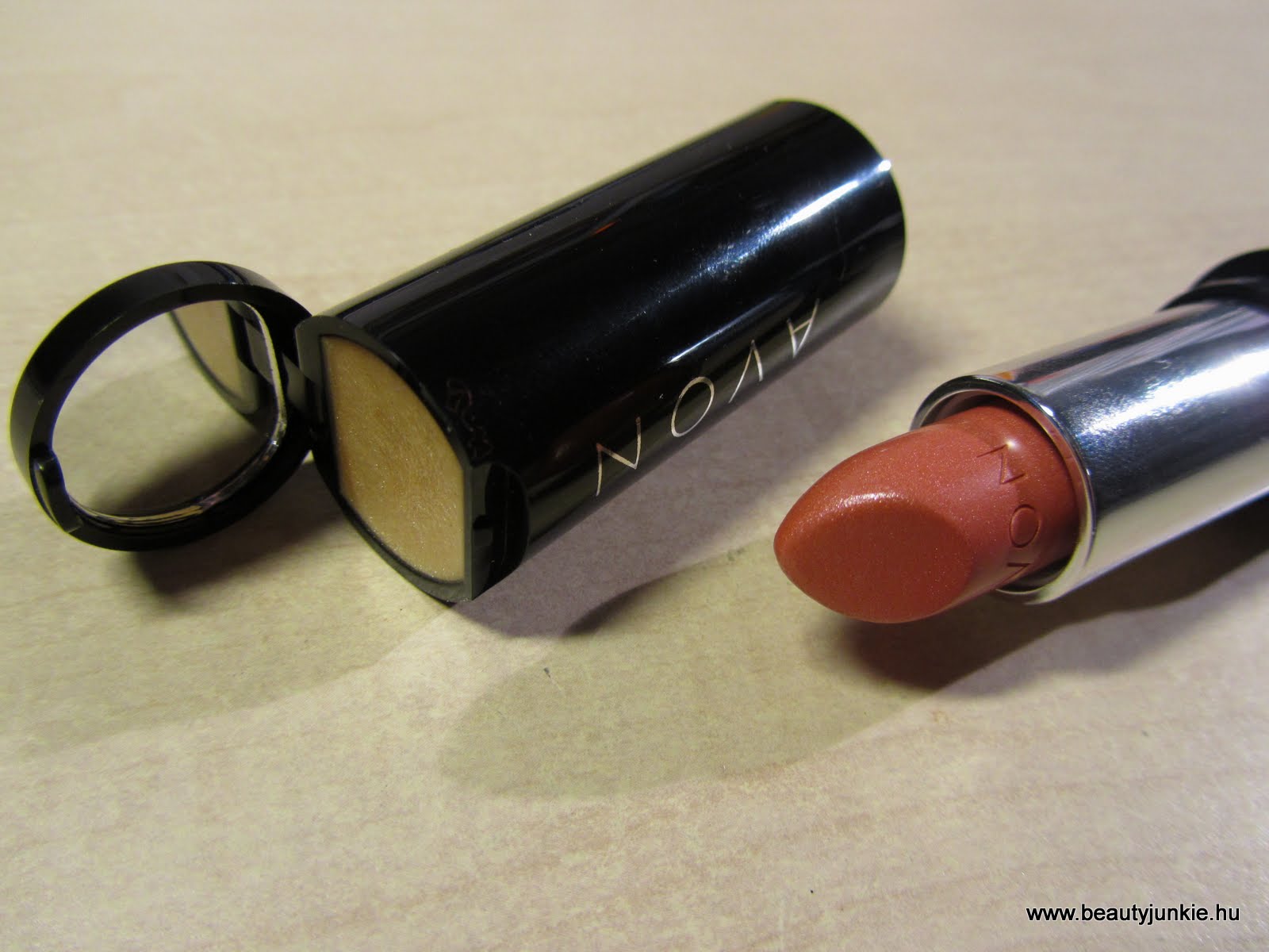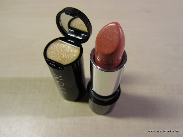 A 2011/14. katalógus újdonságai között található ez a rúzs. Engem mindig vonzanak az ilyen újdonságok, szóval nem volt kérdés, egyet be KELL szerezni ebből is:) Nagyon ötletesnek tartom, hogy a kupakban egy kis szájfény található tükörrel. Bár nem szoktam szeretni az ilyen ujjal felvivős szájfényeket, szerintem sos megoldásnak szuper. A csomagolása egyébként egyszerű fekete, rajta ezüst felirattal, hogy Avon, az alján pedig a név. Van egy kis súlya, nem kelt gagyi hatást.