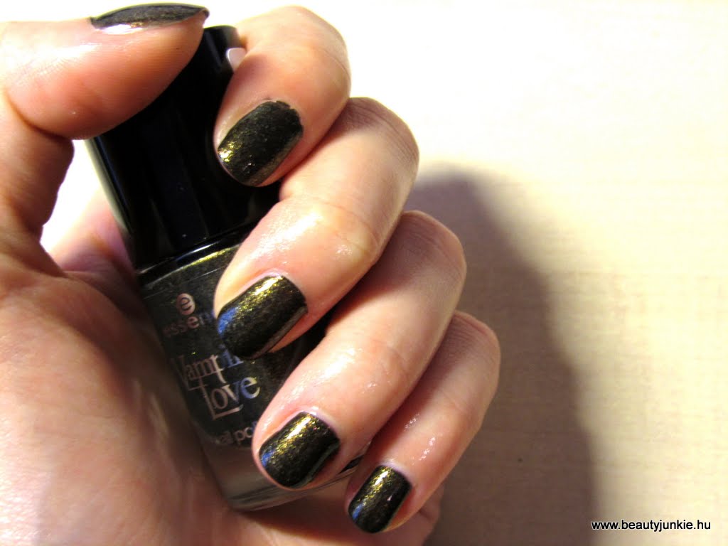 Ez a lakk az essence Vampire’s Love kollekciójának egyik említésre méltó darabja, amit még mindig megtaláltok a drogériák polcain. Üvegben egyszerűen csodálatosan néz ki, egy rétegben kiábrándító sőt egyenesen gusztustalan, két rétegben viszont ugyanolyan gyönyörű, mint az üvegben! Hála az égnek az első réteg után nem dobtam azonnal a kukába, pedig tényleg borzasztó rosszul nézett ki..