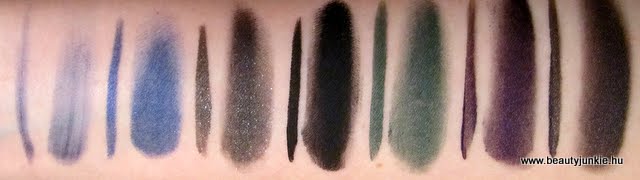 Coastal Scents(indigo blue), Avon (shimmering sapphire, blackened metal), MAC (blacktrack, dark envy), Essence (berlin rocks, london baby)
