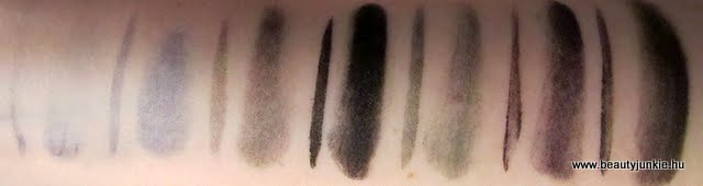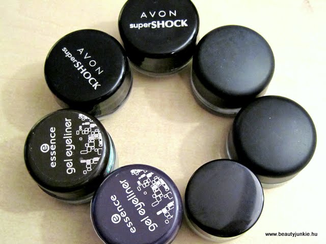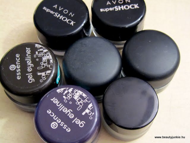 Az Essence tusok számítanak a legolcsóbbnak a piacon ha jóltudom, főleg, hogy most 300 ft-ért lehet beszerezni az akció keretein belül. Nekem a barna (London Baby) és a lila (Berlin Rocks) van meg, és igazából nem tapasztaltam nagy különbséget a kettő között. Az essence tusok nem is zselés állagúak, hanem inkább habosak. Annyira könnyű a textúra, hogy nekem már sok is kicsit, az ecset szinte magától elmerül benne, úgyhogy óvatosan kell vele bánni. A vonal sem lesz egyenletes fedettségű, a széleire torlódik a festék, szóval át kell menni rajta többször, hogy szép erős és egyenletes legyen. Ettől függetlenül végülis jó kis darabok, a barnát egészen sokat használtam már, kicsit macerásabb, de ha odafigyelünk a használatára, akkor nincs vele gond.