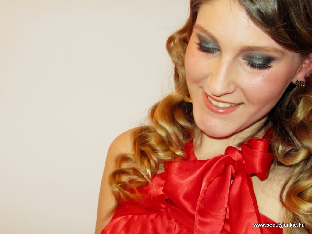 Szerda este egy barátnőm születésnapját ünnepeltük, úgyhogy kicsit sminkelhettem erősebben, mint szoktam. 🙂 Most egy szürkés fekete sminket készítettem, amibe a végén türkiz pigmentet ütögettem, hogy egy kicsit érdekesebb legyen a végeredmény. Jó lenne, ha többször lenne lehetőségem elmászkálni, mert nagyon szeretem az ilyen erősebb sminkeket is egyébként:)