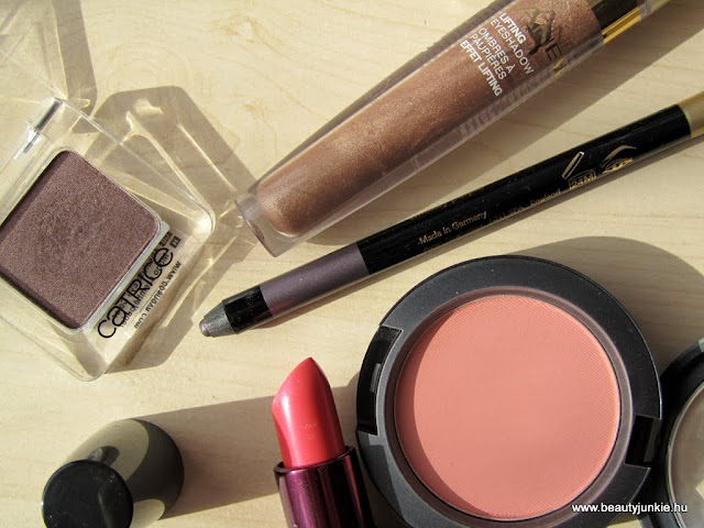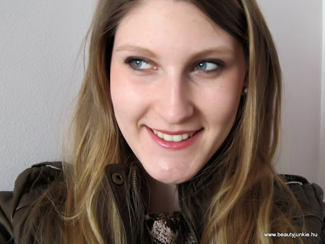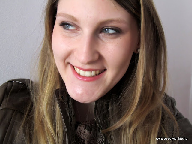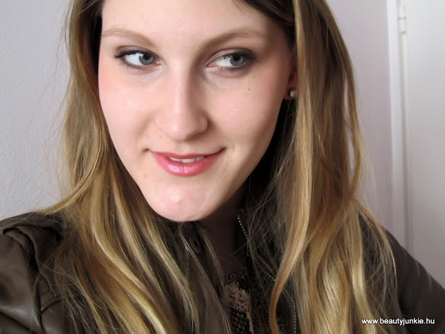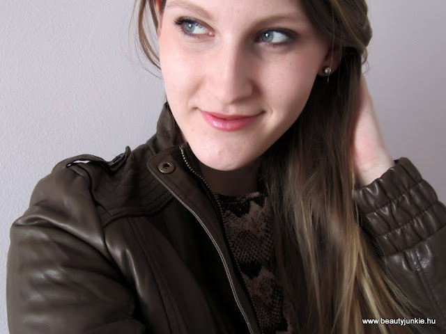 Ma úgydöntöttem eljött a bőrkabátos idő, úgyhogy ehhez sminkeltem most egy kicsit barnás-lilás szemet, plusz az aktuális kedvenc rúzsomat és pirosítómat használtam. A rúzs az Avon új kollekciós rúzsa az Apricot Mystery, imádom konkrétan:)) Mostanában egyébként ez a turbó sminkem, erre biztosan mindig van idő a reggeli készülődésben!