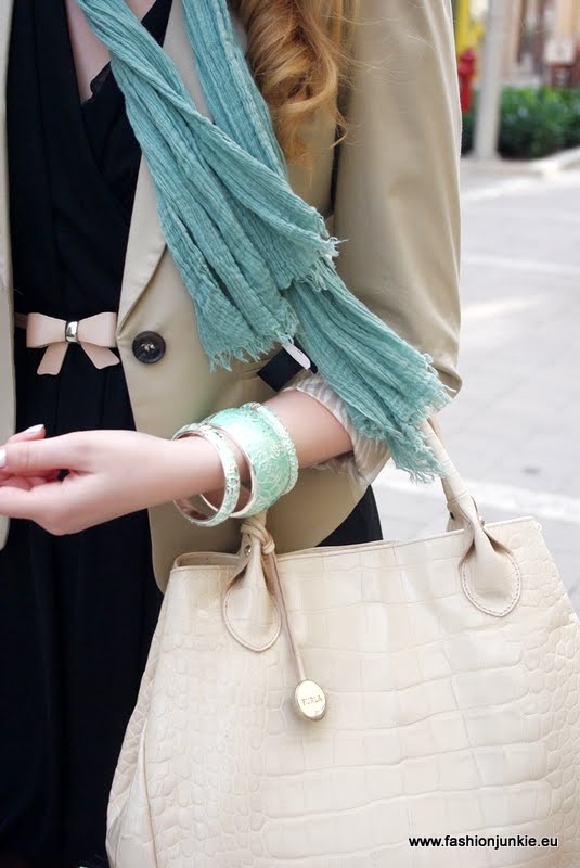 One of my favourite spring outfits is the dress with blazer combo. It’s kind of a comfy outfit for me, I like to dress like this when we have this beautiful weather. 🙂 I’ve already told you about my SYL bangles, actually these are my favourite ones right now! So in the morning I’ve decided to wear them and add a little mint accent to my look.