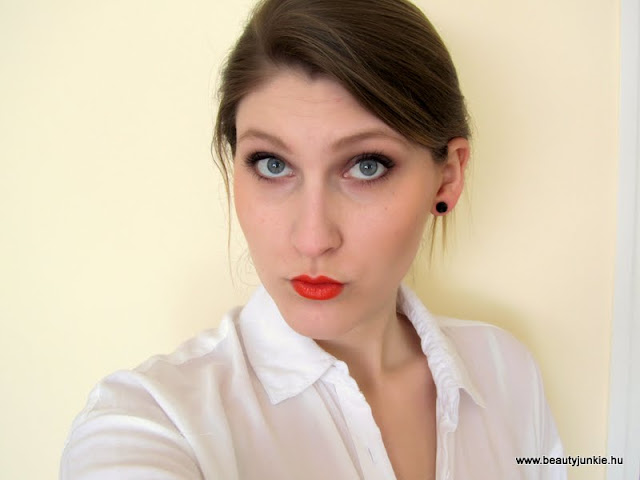 A rúzsról is ejtek néhány szót, mert megérdemli. A formájával nem vagyok kibékülve, alig várom, hogy lekopjon ez a furcsa hegye, de egyébként csillagos ötösre vizsgázott! Délután fél3-kor kentem fel, a képek is ekkor készültek, ezután elmentem a programra, ott ettem-ittam rendesen, hazaértem fél9-re és még mindig ott volt a számon! Kicsit már enyhébb volt a szín, de gyönyörűen egyenletesen kopott, semmi rondaság, és még mindig narancssárgák voltak az ajkaim! Pedig egyszer sem igazítottam fél 3 óta!! Drogériás rúzstól én ilyet nem vártam volna, hogy őszinte legyek, de ez elég meggyőző!