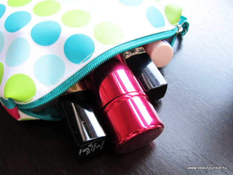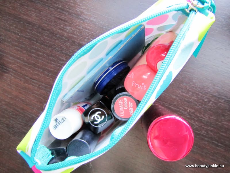10 dolog maradt tehát összesen, amivel rendbe tudom magam szedni. Nekem az arcom szokott általában kifényesedni, kiszárad a szám és lekopik a rúzs/szájfény. A többi egyszerűen nem szorul igazításra egy átlagos napon, tehát feleslegesen hordom a szemceruzát, pirosítót, spirált satöbbit magammal, ha egyszer soha sem kerül elő! A rúzsok/szájfények többen vannak, mert ezeket szeretem váltogatni akár egy nap során is, akkor meg külön jó, ha van több féle, ha extrább programom van stb..
