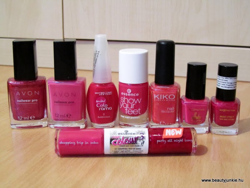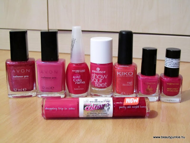 A csoportból a két kedvencem az Avontól van, nagyon jól fednek és a színük is gyönyörű. Mostanában a Kiko-t hanyagolom, most nem tetszik igazán ez a tejes rózsaszín, a L’Oréal pedig kicsit áttetsző, lusta vagyok én már ennyiszer áthúzni egy lakkot..