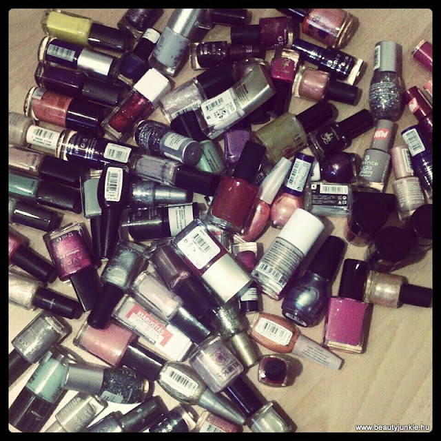 Kicsit elképedtem én is, mikor összerendeztem őket ilyen szép sorokba, hogy mennyi és milyen lakkom van, és rájöttem, hogy szinte a feléhez még nem is nyúltam! Innen jött az ötlet, hogy akkor most sorra fogom venni őket, és megmutatom az összeset felkenve! Több értelme is lesz remélem, mint egy celluxon mutogatni, ti is jobban látjátok majd melyik milyen. Én pedig végre kipróbálom azokat is, amik már félig meddig a feledésbe merültek!
